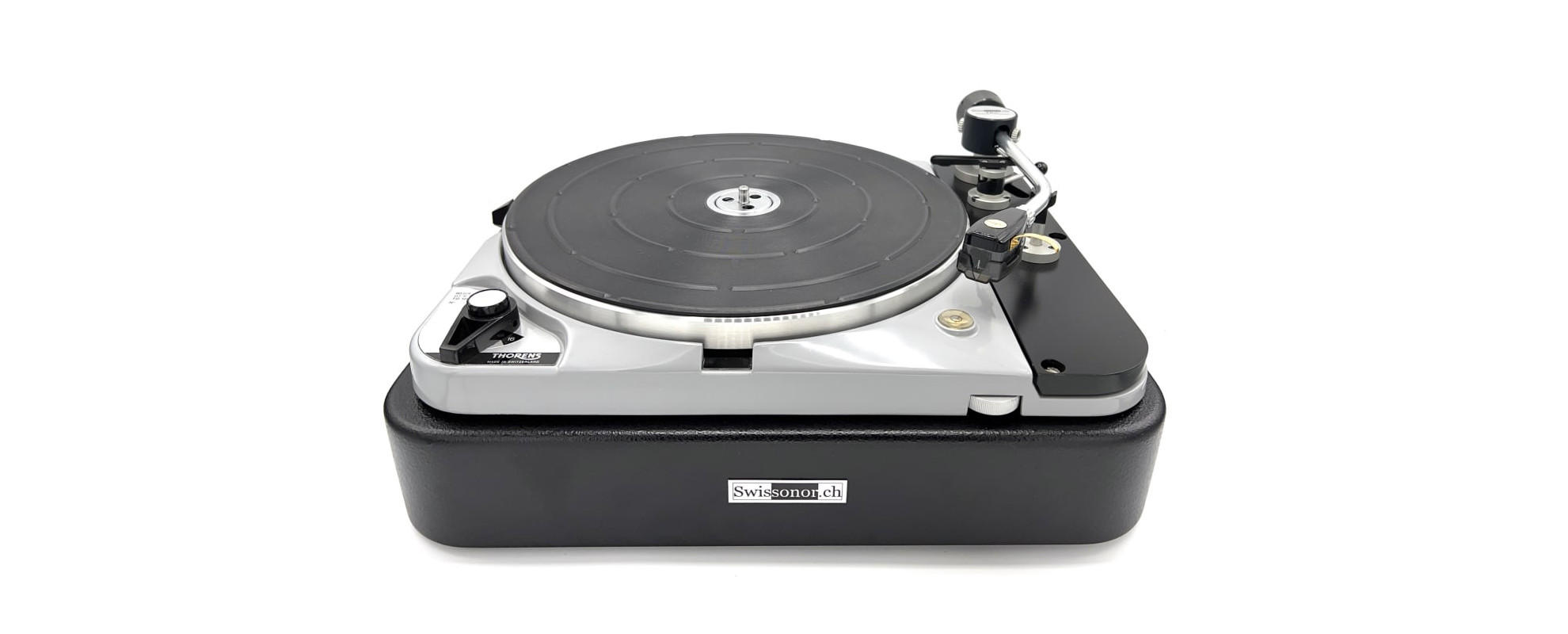 Giradischi con piatto non magnetico per il classico Thorens TD 124, dotato di diverse parti di aggiornamento Swissonor e dichiarato prodotto dell'anno nel 2008 da Art Dudley di Streophile, un giradischi di oltre 50 anni che è un riferimento assoluto ancora oggi.